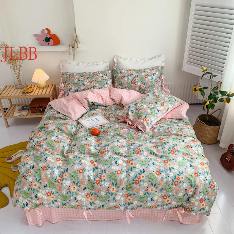 Product Name: ちょう結び春寝具綿セットツインキングサイズリボンベッドリネンセットアメリカンスタイルの寝具夏のベッドセットガールピンクベッドセット