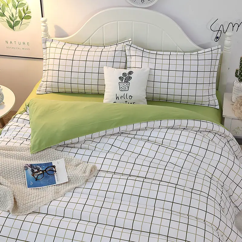 Special Offer シンプルなベッド4ピースチェック柄スタイル北欧キルトカバーベッドシート枕寮のベッドルーム三ピースホームテキスタイル Discount [NEW!!] Today!